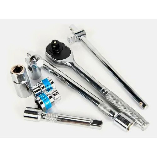 O conjunto é composto por 24 peças cuidadosamente selecionadas, incluindo soquetes de diferentes medidas, catraca reversível, extensões e acessórios que permitem atuar em uma ampla variedade de aplicações. A catraca de 1/2” possui mecanismo de precisão, que facilita o aperto e desaperto de porcas e parafusos com rapidez e segurança.