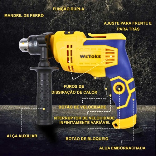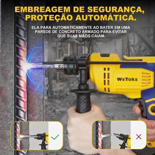 Seu sistema de impacto aliado à função martelete rompedor possibilita maior eficiência em obras, reformas e serviços profissionais, garantindo rapidez e força em demolições leves e perfurações profundas. A velocidade variável de até 2900 rotações por minuto proporciona maior precisão e controle, adaptando-se às necessidades do usuário.