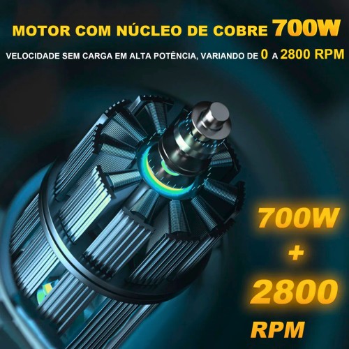 Design ergonômico com empunhadura auxiliar para conforto e segurança