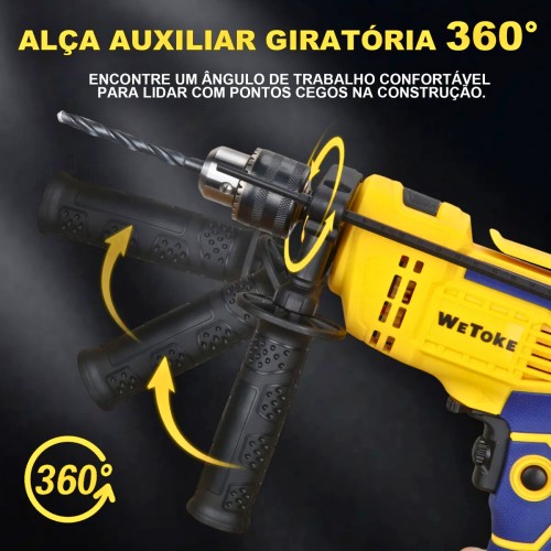 O design ergonômico, com empunhadura auxiliar ajustável, garante firmeza, segurança e conforto durante o uso, mesmo em longas jornadas de trabalho. Fabricada com materiais resistentes, essa furadeira/martelete combina robustez e praticidade, sendo indispensável para pedreiros, instaladores, marceneiros, eletricistas e também para uso doméstico em reparos e manutenções.