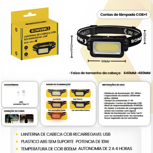 LANTERNA DE CABEÇA RECARREGAVEL USB BOM-4014