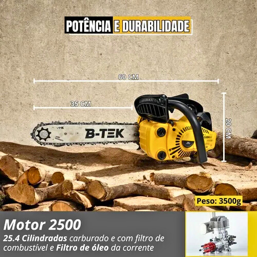 Combinando potência, praticidade e durabilidade, a Motosserra B-TEK BT-DZ46 é a escolha certa para quem busca eficiência e confiabilidade em uma ferramenta de corte portátil.