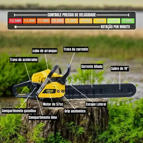 Motor Potente de 24,4 cc: Proporciona cortes rápidos e eficientes em madeira de diferentes tipos e espessuras.