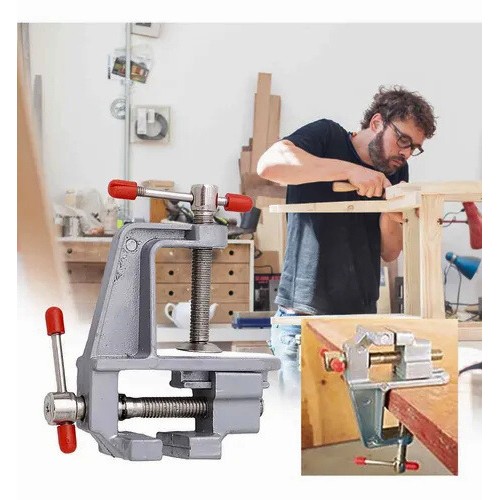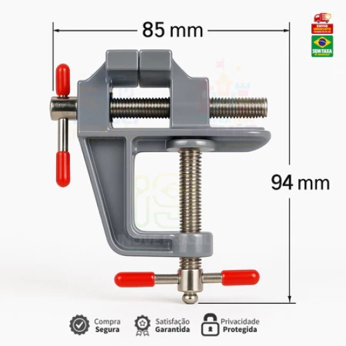Compacto e funcional, pode ser facilmente instalado em bancadas, mesas ou superfícies planas, sendo perfeito para serviços de bricolagem, artesanato, modelismo, reparos leves, trabalhos em madeira, plástico e metais pequenos. Seu sistema de fixação é simples e eficiente, permitindo prender objetos com estabilidade e precisão.