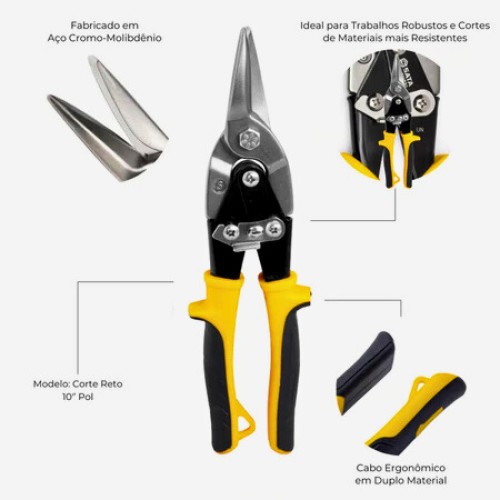 O Alicate de bico 10" é uma ferramenta profissional desenvolvida para cortes precisos e seguros em chapas de metal, aço inox, alumínio e outros materiais. Projetada com lâminas afiadas e cabos ergonômicos, proporciona praticidade e eficiência em trabalhos de serralheria, metalurgia, construção civil e manutenção automotiva.