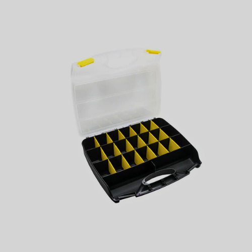 A Maleta Organizadora FST020 é uma solução prática e funcional para armazenar e organizar pequenos itens como parafusos, porcas, arruelas, peças de artesanato, materiais de escritório, entre outros. Com 23 divisões, sendo 18 modulares, permite configurar os compartimentos conforme a necessidade. Sua tampa transparente facilita a visualização dos itens armazenados, e a alça reforçada com travas garante segurança e praticidade no transporte.