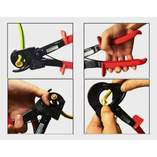 Este alicate é uma ferramenta essencial para profissionais da área elétrica, projetado para cortar cabos de cobre ou alumínio sem alma, com seção transversal de até 240mm². Seu sistema de catraca permite cortes precisos e com menor esforço, tornando-o ideal para trabalhos que exigem eficiência e qualidade.