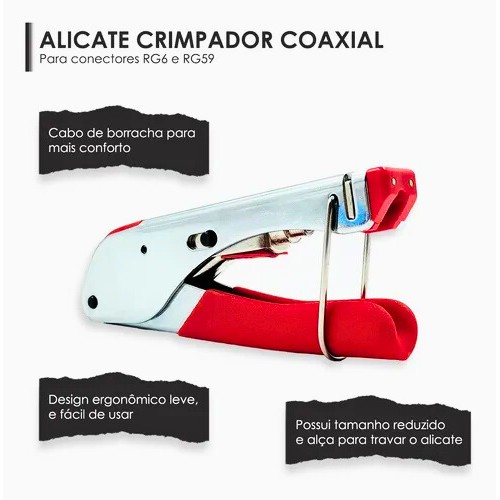 O Alicate Crimpar Crimpador para Cabos é uma ferramenta essencial para profissionais de telecomunicações, eletrônica e instalações de TV a cabo. Desenvolvido para garantir precisão e segurança, permite crimpar conectores coaxiais com rapidez e eficiência, assegurando uma conexão firme e confiável.