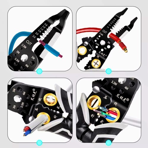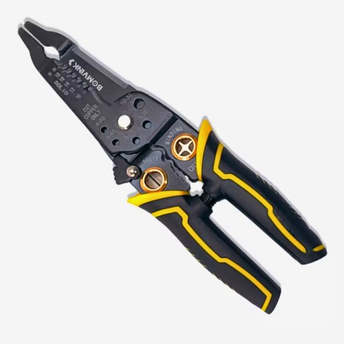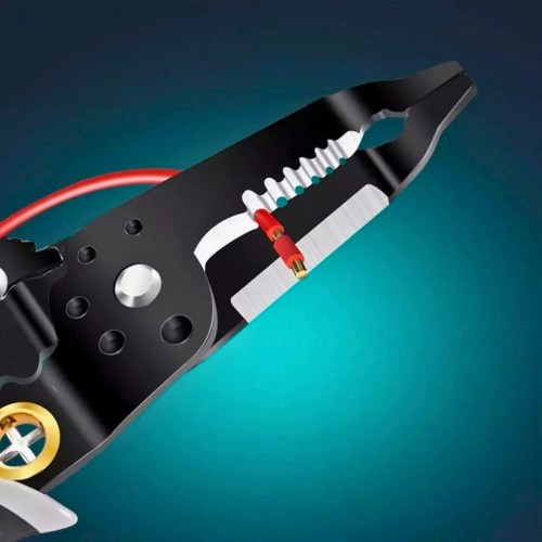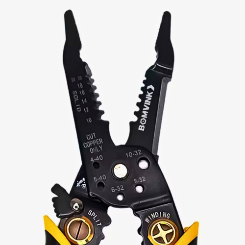 Fabricado em aço de alta resistência, o alicate garante durabilidade e precisão. Seu cabo emborrachado ergonômico proporciona firmeza e conforto, reduzindo a fadiga durante o uso prolongado. Possui ajuste prático para diferentes bitolas de fios, tornando-se indispensável em instalações elétricas residenciais, automotivas e industriais.