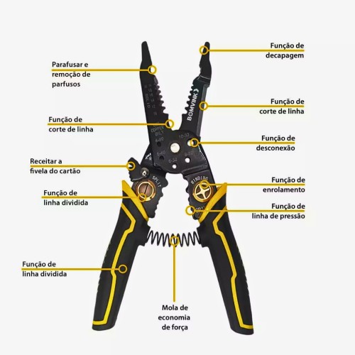 - Multifuncional: corta, decapa, enrola e separa fios.