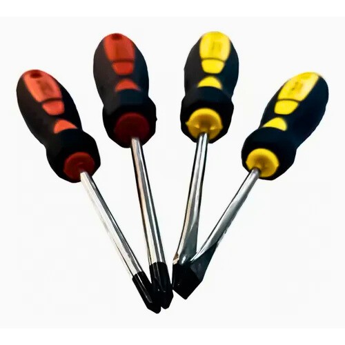 O Kit de Chaves de Fenda 4 Peças é um conjunto essencial para uso doméstico, profissional ou automotivo. Fabricadas em aço de alta resistência, as hastes oferecem durabilidade e maior torque durante o uso. Os cabos são ergonômicos, proporcionando pegada firme, conforto e segurança ao manusear.