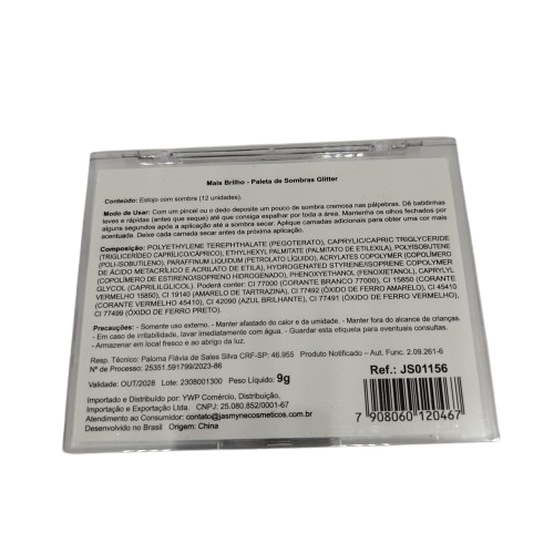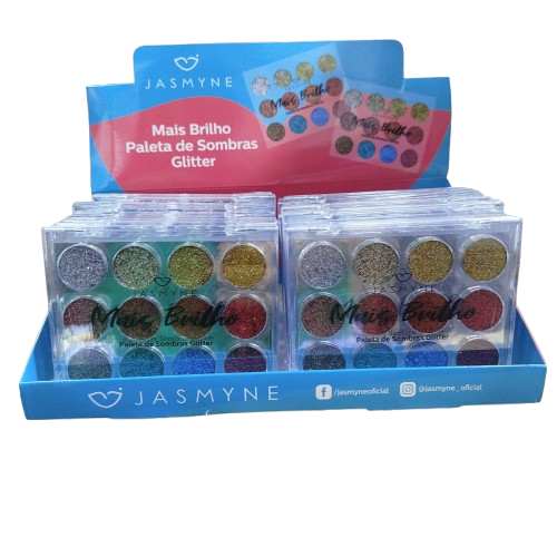 Paleta de Sombras Mais Brilho Glitter BOX C/12 Unidades Jasmyne JS01156