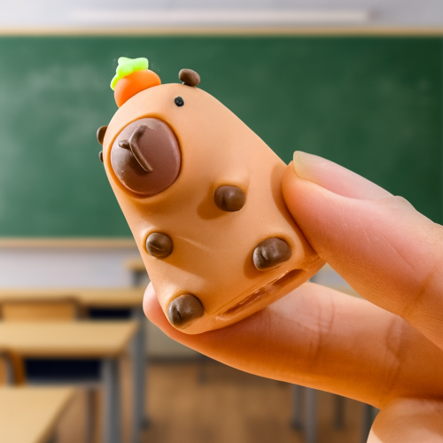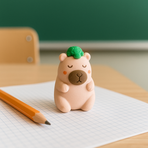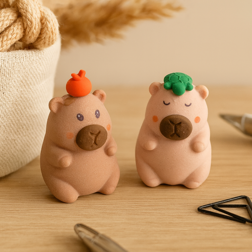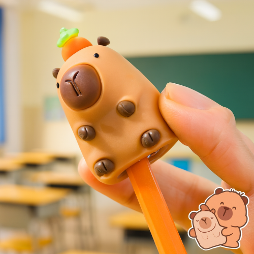 Este item divertido e funcional combina duas utilidades em um só produto: apontador e borracha. Com design fofo em formato de capivara, é perfeito para deixar o material escolar mais alegre e criativo.