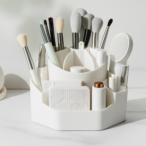 Com design moderno e formato giratório, o Porta Maquiagem REF9202 é ideal para manter seus cosméticos e acessórios sempre à mão, de forma prática e elegante. Seus múltiplos compartimentos permitem armazenar batons, pincéis, bases, sombras e outros itens, garantindo uma rotina mais rápida e organizada.