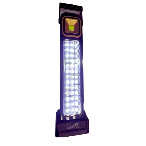 Lanterna Solar LED com 39 LEDs, ideal para iluminação portátil e recarregamento por energia solar. Possui 5 modos de intensidade, design moderno e alça para transporte. Potência de 30W, perfeita para uso doméstico, camping ou situações de emergência.