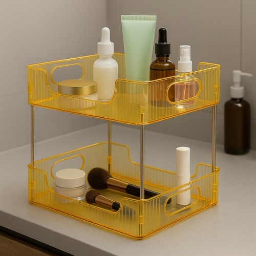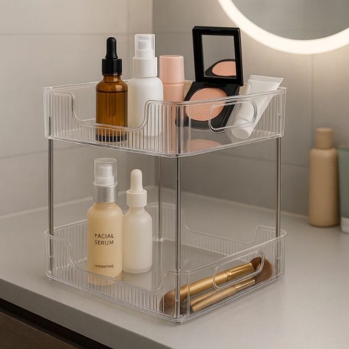 Com um design funcional e elegante, este organizador possui dois andares que oferecem amplo espaço para seus produtos de maquiagem e cosméticos, café ou organização em qualquer parte da casa ou escritório, permitindo fácil acesso e visualização dos produtos