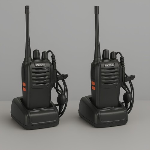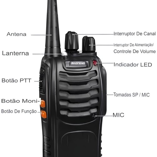 Este kit inclui 2 rádios comunicadores, 2 carregadores de mesa e a embalagem original, ideal para comunicação de longa distância em segurança, eventos e atividades externas.