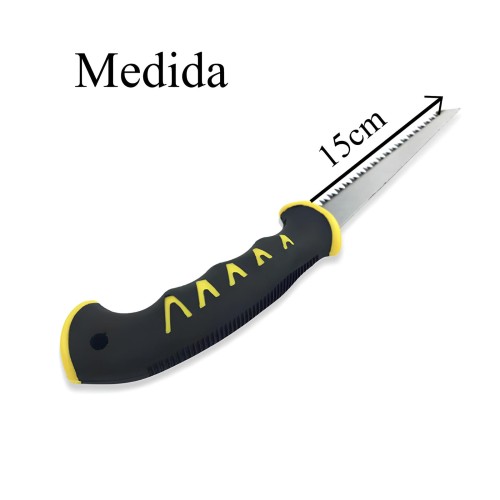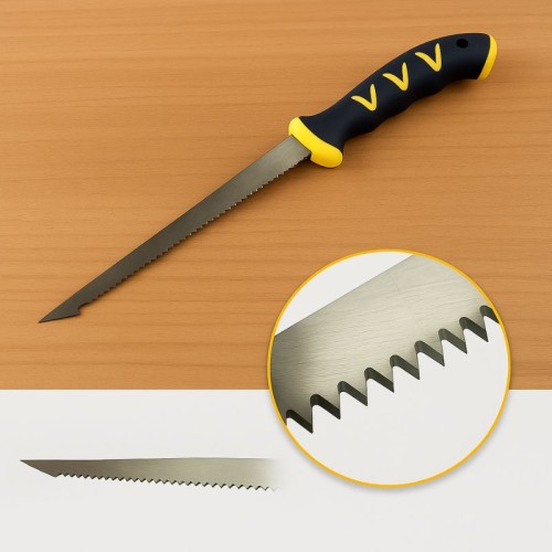 Ideal para: Marceneiros Instaladores de drywall Uso doméstico e DIY Especificações Técnicas: • Comprimento da lâmina: 6” (15 cm) • Material: Aço temperado e plástico • Cor: Preto e amarelo • Uso: Gesso e drywall Ferramenta indispensável para cortes ágeis, limpos e com acabamento profissional.