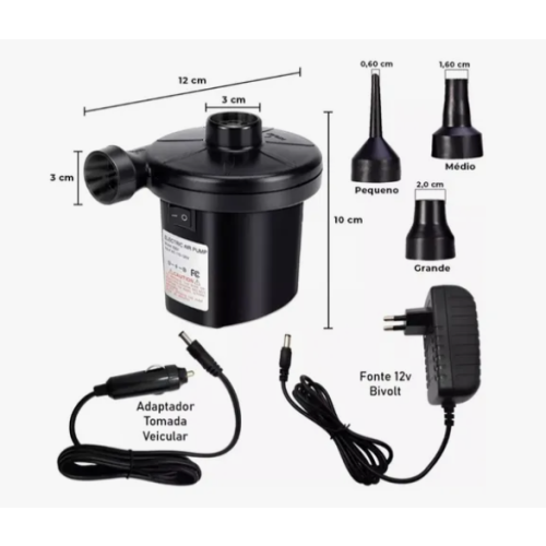 1 Bomba De Ar Elétrica Colchão Piscina Infláveis 3 Bicos – BOM8901