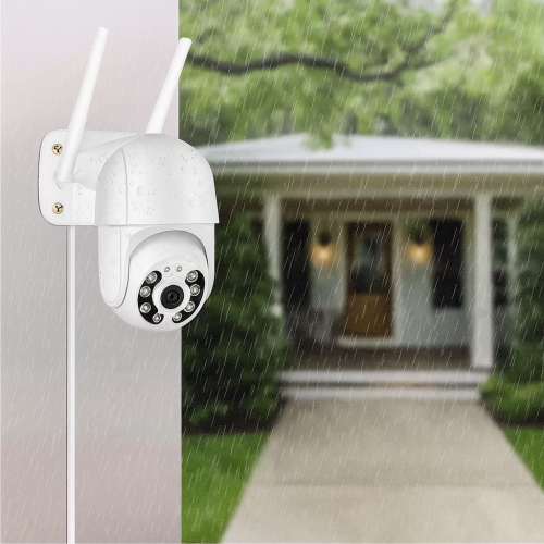 Câmera de Segurança IP66 à prova d’água, ideal para monitoramento externo em qualquer condição climática. Possui visão noturna, rotação panorâmica e inclinação para cobertura total do ambiente. Resistente ao sol, chuva, neve, poeira e variações extremas de temperatura. Compatível com conexão Wi-Fi, oferecendo imagens em alta resolução e fácil instalação na parede.