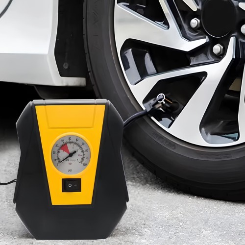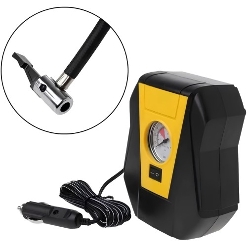Equipamento portátil multifuncional, ideal para insuflar pneus de carros, motos, bicicletas e bolas em situações de emergência. Possui design compacto e leve, com manômetro integrado para controle preciso da pressão.