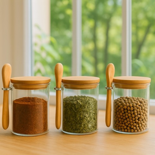 Para quem quer organizar a cozinha de forma prática e elegante, o KIT POTE DE VIDRO COM TAMPA DE MADEIRA KLYH3320 é a solução ideal. Seus potes de vidro com tampa de bambu e colher lateral facilitam o dia a dia, permitindo armazenar e servir alimentos como café, açúcar, grãos e temperos com muito mais facilidade. Uma escolha inteligente para quem valoriza funcionalidade e design.