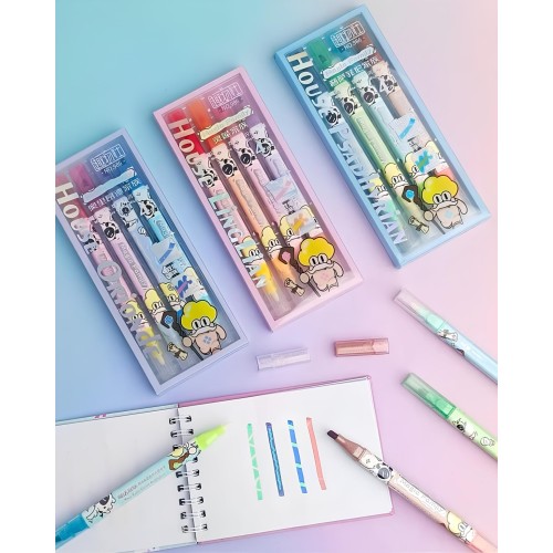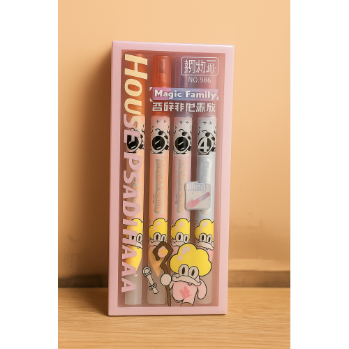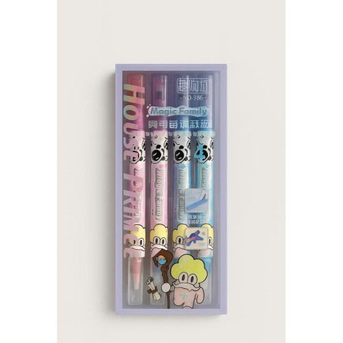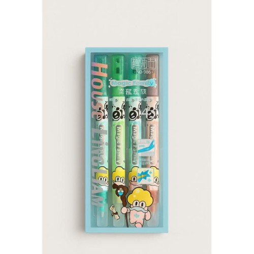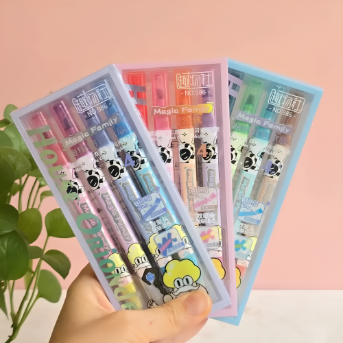Nosso conjunto de quatro marcadores de texto com dois lados oferece o melhor dos dois mundos: um lado possui um marcador com glitter brilhante, enquanto o outro inclui uma borracha prática para correções precisas.
