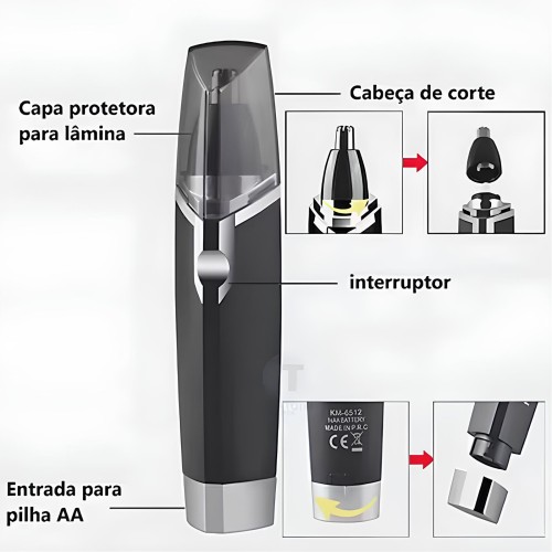 O Kemei KM-6512 é o aliado perfeito para quem busca higiene pessoal com eficiência e conforto. Compacto, leve e fácil de usar, ele foi desenvolvido especialmente para remover pelos indesejados de áreas delicadas como nariz, orelhas, sobrancelhas e barba — tudo isso sem causar irritações.