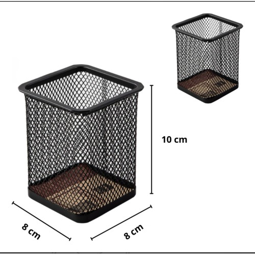 O material metálico garante durabilidade, enquanto a estrutura vazada permite fácil visualização e ventilação dos objetos. Ideal para armazenar canetas, lápis, marcadores, tesouras e outros acessórios de papelaria.