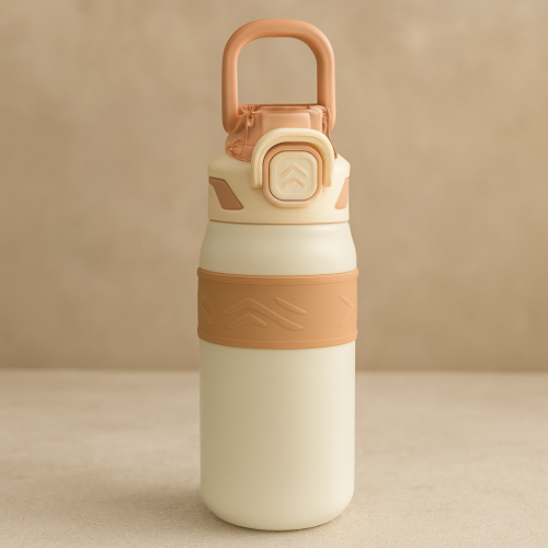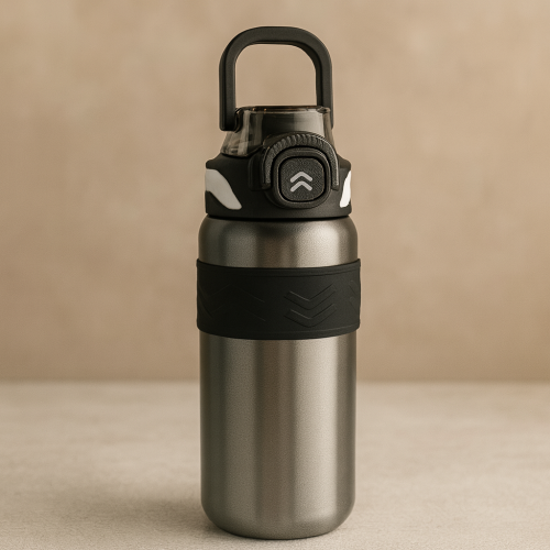 Prática, resistente e com visual moderno, esta garrafa térmica/esportiva é ideal para academia, trabalho, escola e passeios. O corpo metálico mantém a bebida na temperatura por mais tempo, enquanto a faixa em silicone com textura em “chevron” melhora a pegada e evita escorregões. A tampa conta com trava de segurança com botão, bico protegido por capa transparente e alça integrada para transportar ou pendurar na mochila.
