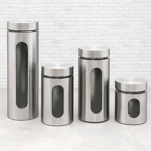 Este elegante kit é composto por 4 potes herméticos confeccionados em aço inoxidável de alta qualidade, ideais para armazenar alimentos secos como massas, grãos, temperos, cereais, biscoitos e muito mais. Cada pote possui visor transparente em vidro, permitindo fácil visualização do conteúdo, além de tampa rosqueada com vedação que mantém os alimentos frescos por mais tempo.
