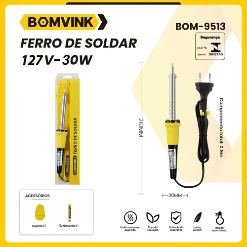 Ferro De Solda Com Suporte 30w Fame 127v Inmetro Voltagem 110v, uma ferramenta essencial para todos os profissionais e entusiastas de eletrônica. Este ferro de solda tipo lápis é perfeito para trabalhos de precisão. Com uma potência de 30W, este ferro de solda é capaz de atingir rapidamente a temperatura ideal para uma soldagem eficiente e segura. Além disso, vem com um suporte prático para facilitar o seu trabalho e garantir a sua segurança. Sua qualidade e durabilidade, tornando este ferro de solda uma escolha confiável para todas as suas necessidades de soldagem.
