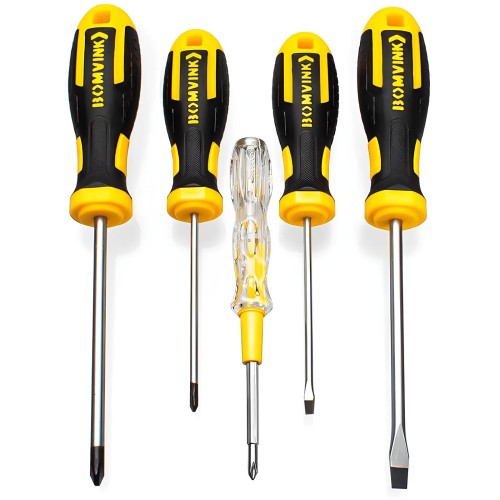 Se você procura um conjunto de ferramentas versátil, durável e seguro para o dia a dia ou uso profissional. Composto por 4 chaves de fenda e Phillips em tamanhos variados e 1 testador de voltagem, este kit oferece qualidade de nível industrial para diversas aplicações – de pequenos reparos domésticos a manutenções técnicas.