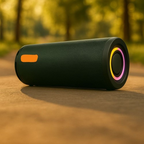 O carregamento é eficiente e seu design portátil e sem fio permite que você leve a caixa de som a qualquer lugar, seja para uma reunião, um piquenique ou simplesmente para relaxar em casa. Além disso, vem equipada com conectividade Bluetooth, assegurando que você se conecte facilmente a dispositivos compatíveis.
