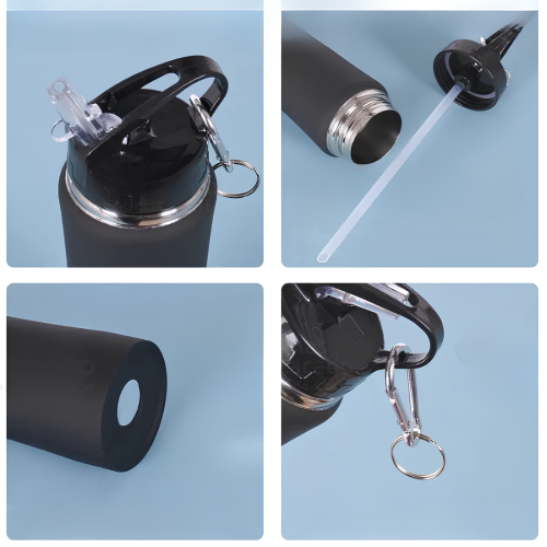 O sistema de isolamento a vácuo mantém bebidas quentes por até 8 horas e frias por até 12 horas, sem transpiração externa. A tampa rosqueável com bico de abertura rápida permite beber diretamente, evitando vazamentos e derramamentos.