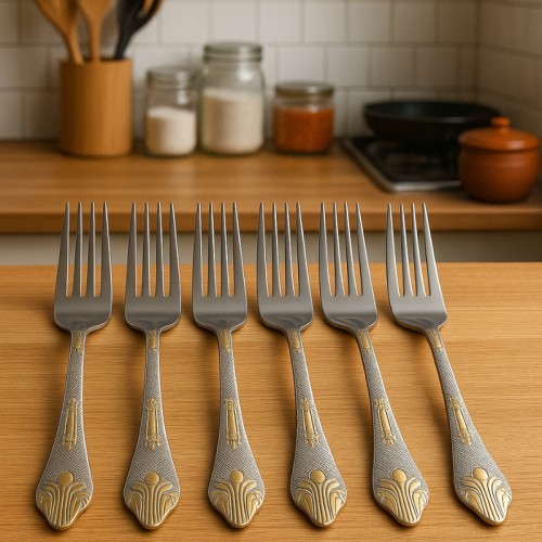 Esse conjunto de garfos é ideal para quem busca praticidade e elegância à mesa. Produzidos em aço inox de alta qualidade, são resistentes, fáceis de limpar e perfeitos para o uso diário ou ocasiões especiais. O design conta com detalhes dourados no cabo, que trazem um toque sofisticado e refinado.