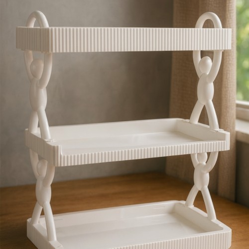 Este organizador moderno e funcional é ideal para manter diferentes ambientes arrumados com praticidade e estilo. Produzido em plástico resistente, possui 3 prateleiras com bordas em relevo e acabamento texturizado, além de laterais decoradas com suportes em formato de bonequinhos, que dão um toque criativo e diferenciado ao design.