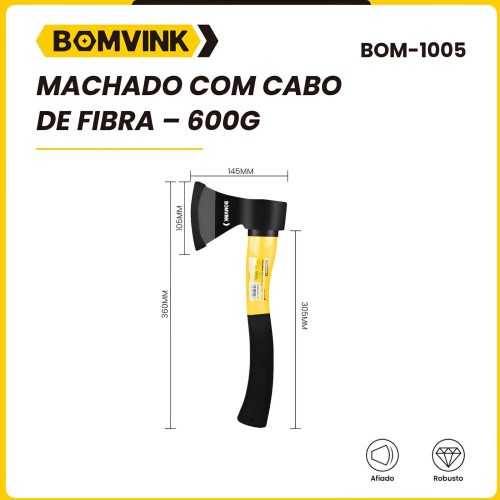 O Machado BOM1005 é a ferramenta ideal para quem busca resistência, durabilidade e desempenho confiável em atividades de corte, seja em madeira, camping ou uso doméstico. Com cabo de fibra reforçada e lâmina afiada, garante precisão e segurança no manuseio.