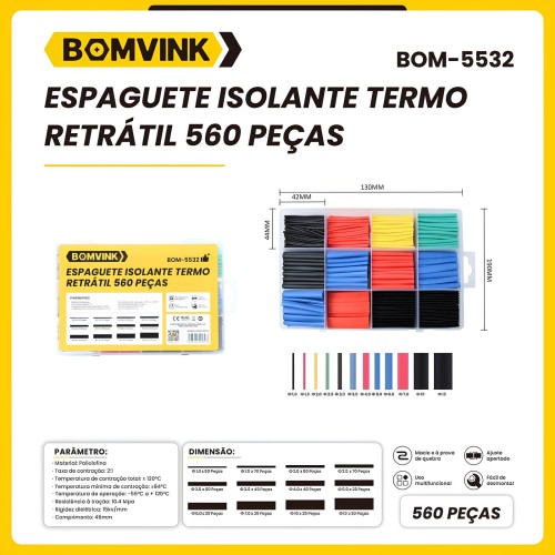 ESPAGUETE ISOLANTE TERMO RETRATIL 560PÇS BOM5532