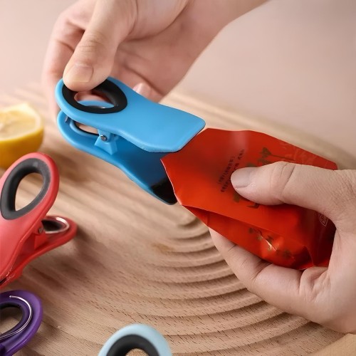 Prendedores multiuso coloridos, ideais para vedar embalagens de alimentos, manter pacotes sempre bem fechados e garantir maior conservação dos produtos.