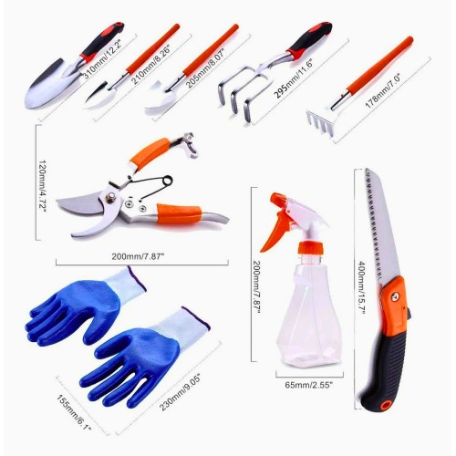 Este conjunto vem com 10 itens essenciais para tarefas variadas no jardim: