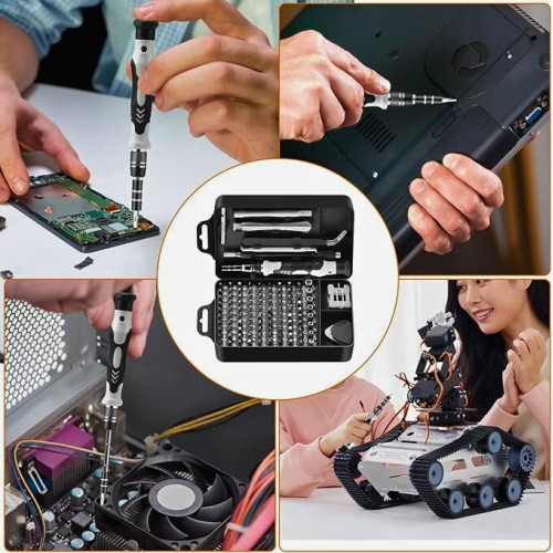 Este kit multifuncional reúne 115 peças essenciais para manutenção e reparo de dispositivos eletrônicos. Compacto e organizado, é perfeito para profissionais e entusiastas que buscam praticidade e eficiência em suas tarefas.