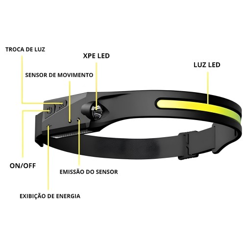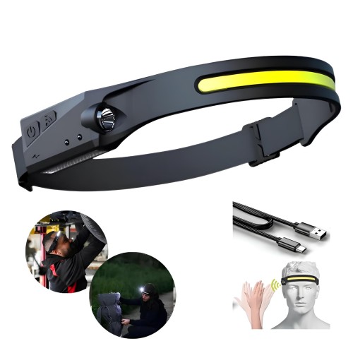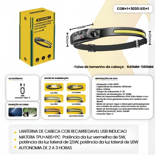 LANTERNA DE CABEÇA COB RECARREGAVEL USB INDUÇÃO BOM-4006