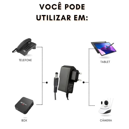 Uso: Equipamentos eletrônicos, roteadores, luminárias LED, câmeras de segurança, receptores e outros dispositivos compatíveis