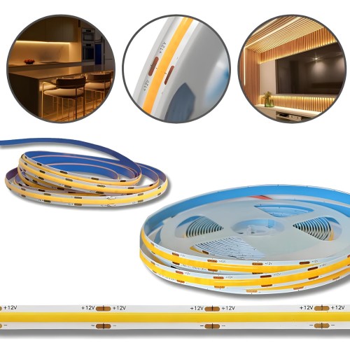 Ilumine seu ambiente com modernidade e economia usando a Fita LED COB 5m. Com tecnologia Chip On Board (COB), oferece uma iluminação contínua e uniforme, sem os pontos de LED aparentes, proporcionando um acabamento mais sofisticado e aconchegante.
