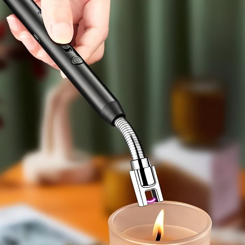 O Isqueiro Elétrico Recarregável USB é prático, seguro e ecológico. Substitui os isqueiros tradicionais, funcionando através de arco elétrico, sem necessidade de gás ou fluido. Possui haste flexível que facilita o uso em diferentes ângulos, ideal para acender velas, churrasqueiras, fogões, lareiras e muito mais.