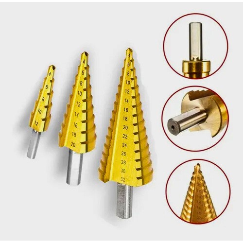 Fabricadas em aço rápido (HSS 4241) e com revestimento em titânio, oferecem maior resistência ao desgaste, menor atrito durante o uso e vida útil prolongada. O design em degraus proporciona cortes precisos e acabamento limpo em materiais como madeira, plástico, alumínio, cobre e chapas metálicas finas.