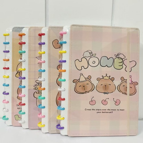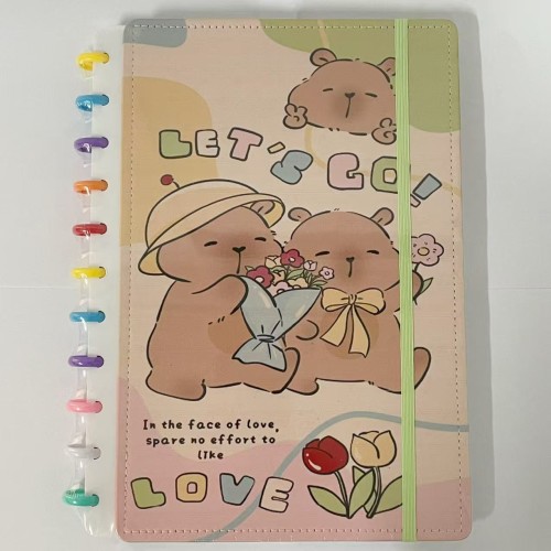 Caderno tipo Inteligente de disco, tamanho A4,Grande 80 folhas, com estampa decorada de Pintura Capivara