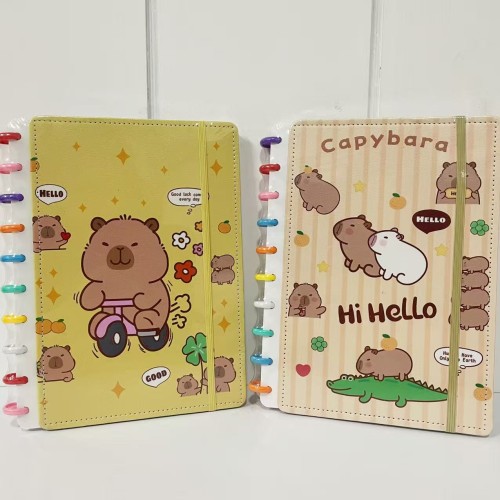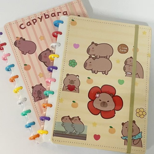 Caderno tipo Inteligente de disco, tamanho B5, médio 80 folhas, com estampa decorada de capivara.