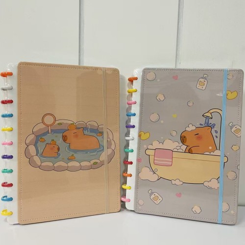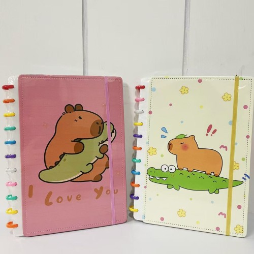 Caderno tipo Inteligente de disco, tamanho A4, Grande 80 folhas, com estampa decorada de CAPIVARA.